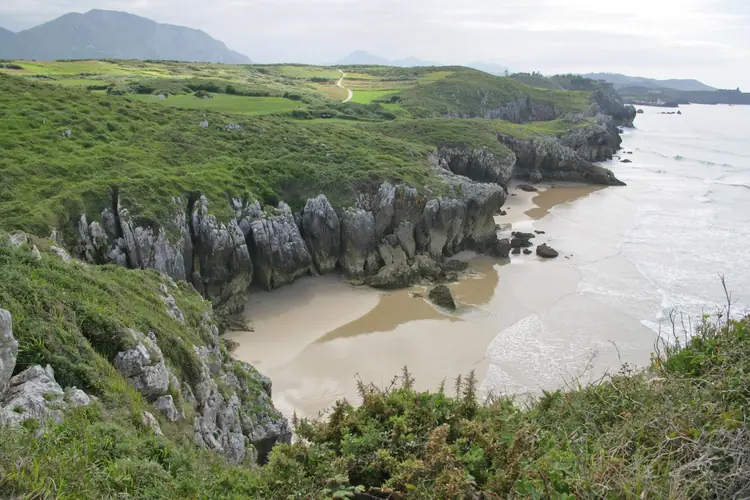 Playa de Andrín. La popular y apreciada playa de Andrín se reconoce desde el mirador de La Boriza, siguiendo el oriente, en el marco de un majestuoso panorama dominado por planas sierras como La Borbolla, la caliza de las playas y el contraste e ...